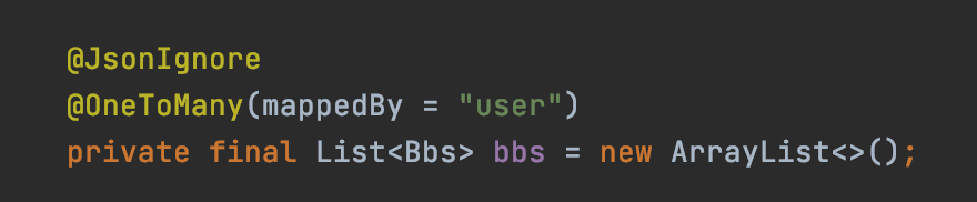 1. bbs와 user 는 ManyToOne 양방향 관계이고 Lazy로딩으로 설정되어있다.