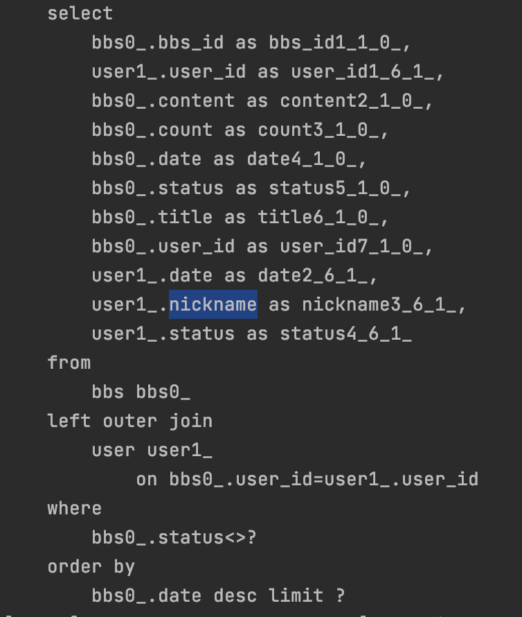 게시글을 가져올때 작성자 닉네임을 함께 가져와야 하기 때문에 user 테이블과 fetch join(EntityGraph)를 통해 성능최적화를 하였다.